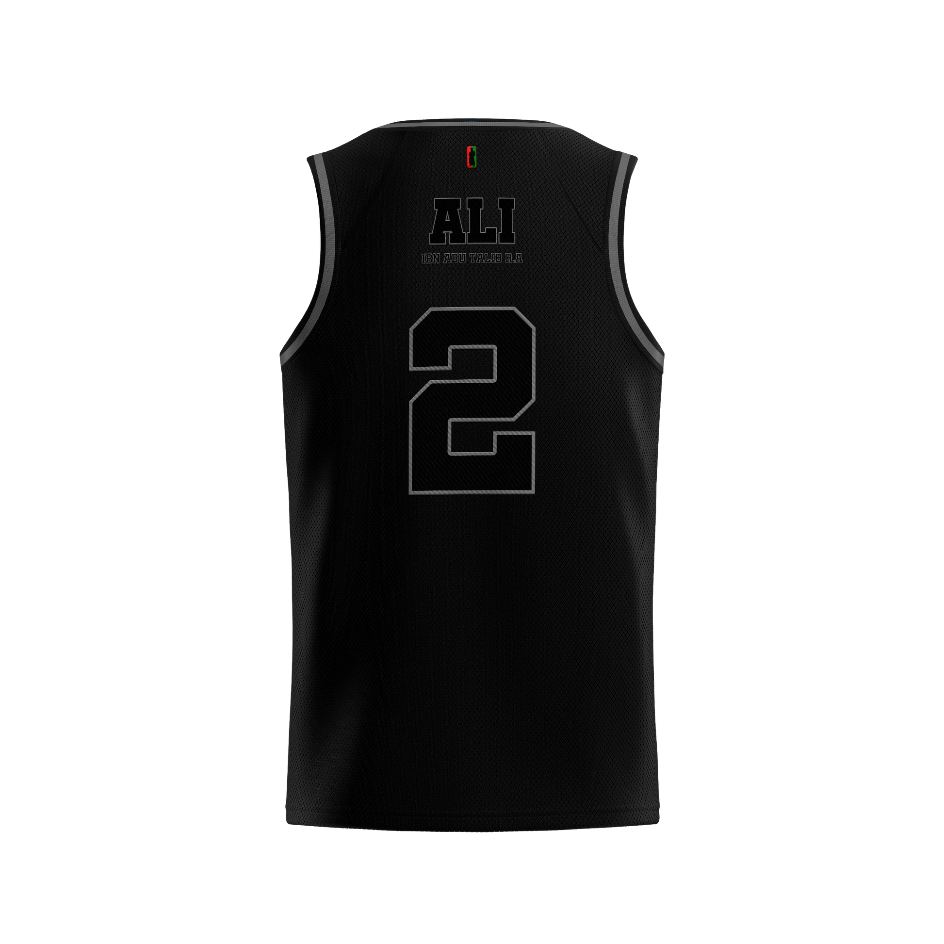 This Black & Grey Ali bin Abi Talib R.A Jersey honors one of Islam’s greatest warriors, scholars, and leaders. As the second person to accept Islam after Khadijah R.A., the number 2 on the back signifies his early embrace of the truth and his unwavering loyalty to the Prophet Muhammad ﷺ.